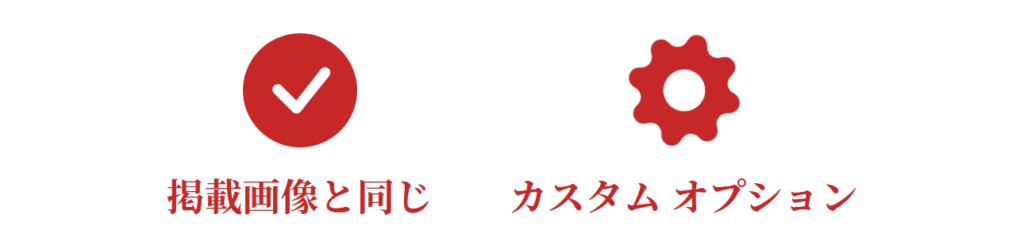 商品ページに移動すると、「掲載画像と同じ」と「カスタム オプション」の2種類を選ぶことができます。